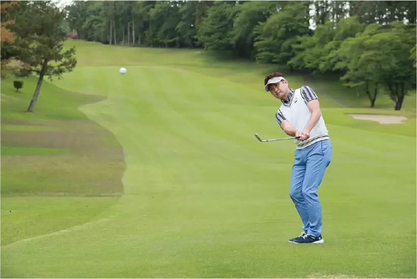 ボールを右足の前に置いて構え、低く打ち出すのもいいが、インパクトが「点」となる。それだけ大ダフリの危険性が高い。
