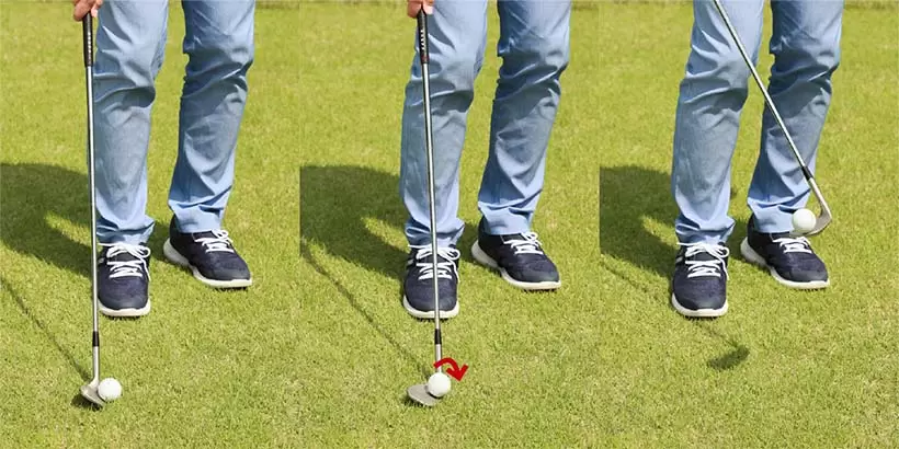 ボールリフティングを始めるときは最初にフェース面のヒール側から回さないとボールがフェース面に乗らない。リフティングがうまい人はアプローチもうまい。