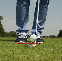 ボールを右足の前に置いて構え、低く打ち出すのもいいが、インパクトが「点」となる。それだけ大ダフリの危険性が高い。
