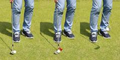 スタンスを狭めにし、ボールの位置はスタンスの中央。軽くハンドファーストに構える。