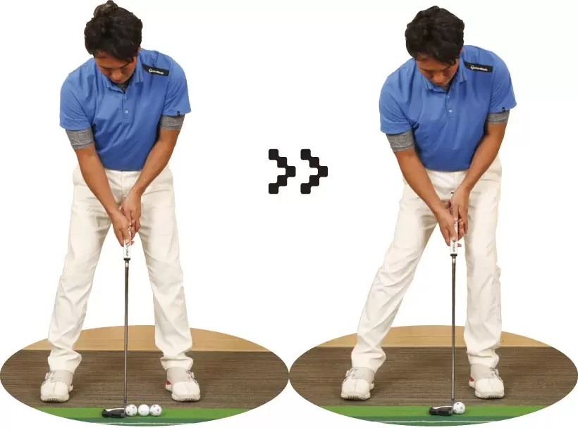 ボール位置を真ん中よりボール2個分左にしたら、左足体重でアドレスする。