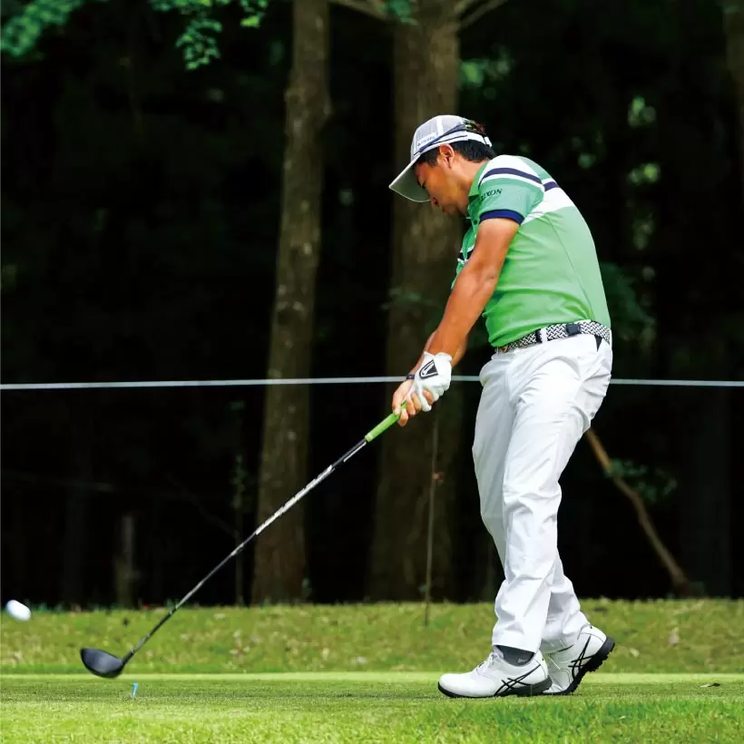 2015年から5シーズンにわたってフェアウェイキープ率1位の座に君臨する稲森。暴れない体が類まれなドライビングコントロールを演出する。