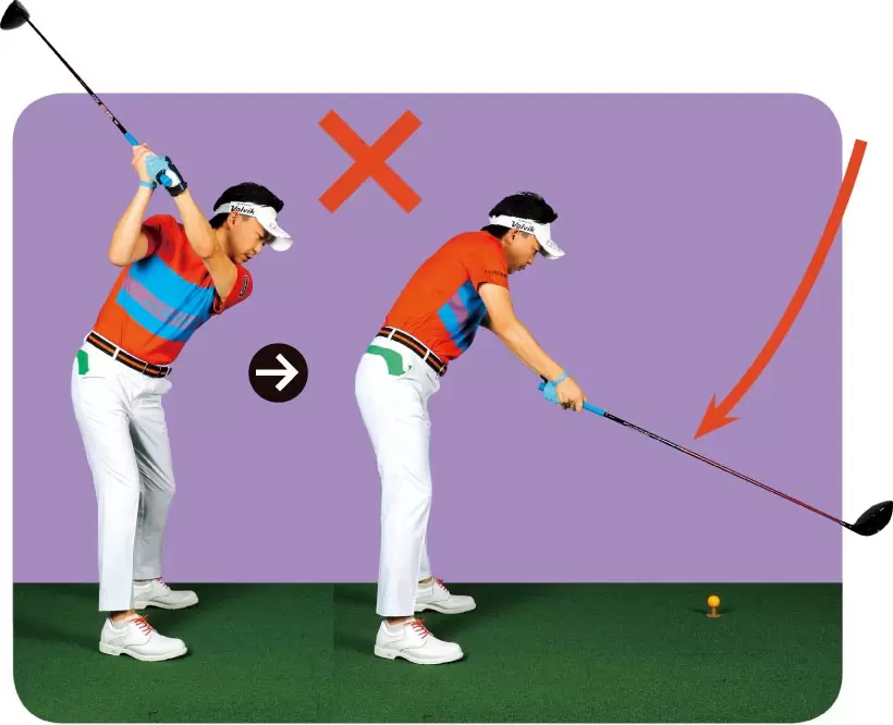 トップでクロスするのは右手を使いすぎるから。ヘッドが外から下りやすい。