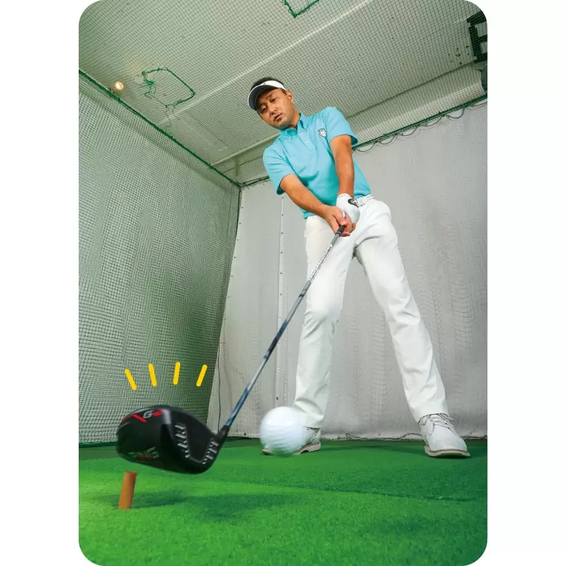 テープのラインが真っすぐからやや右に傾けばフックしないインパクトになる。
