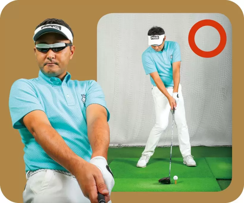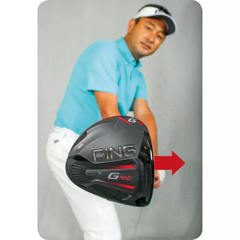 トゥ側で打つと当たり負けしてフェースが開く。フェースを閉じて真っすぐ飛ばす。