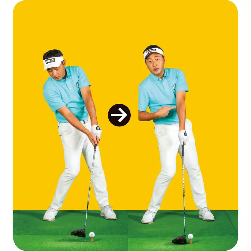 インパクトでツメが前を向いてくるように前腕を左に回すとスライスがなくなる。