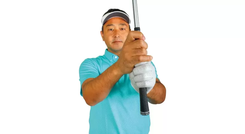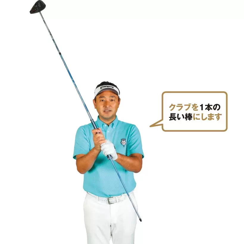 アーリーリリースしていないとハーフウェーダウンで棒が体の前でヨコに。インパクトも作れる。