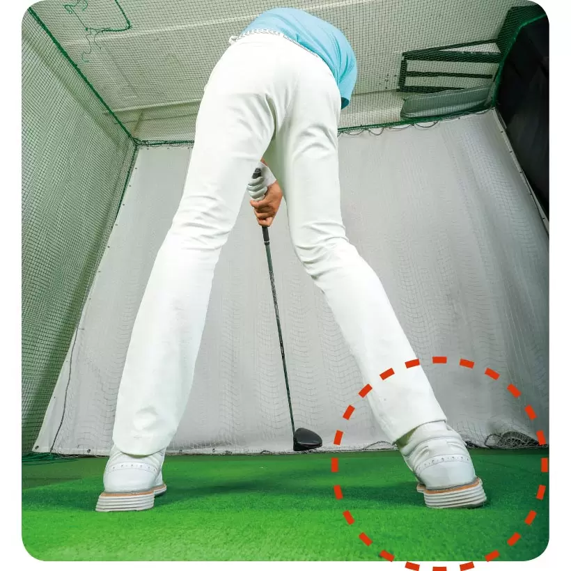 最低限インパクトまでは右カカトは上げずベタ足で打つ。