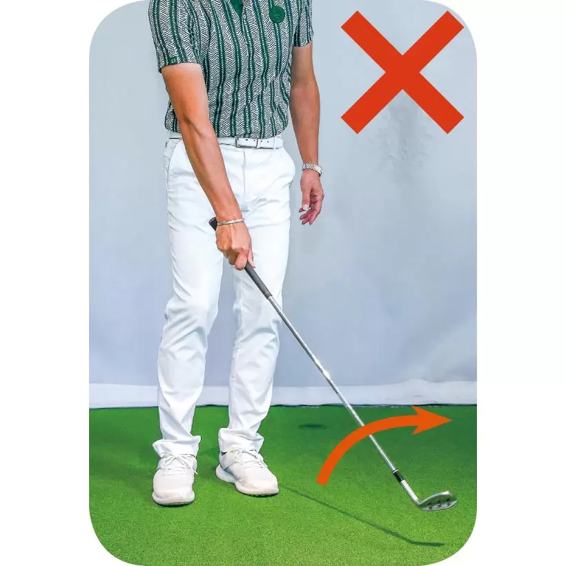 フェース面を上に向けてヒール側からクラブヘッドを回転させるイメージを持とう。
