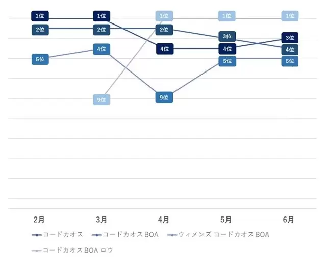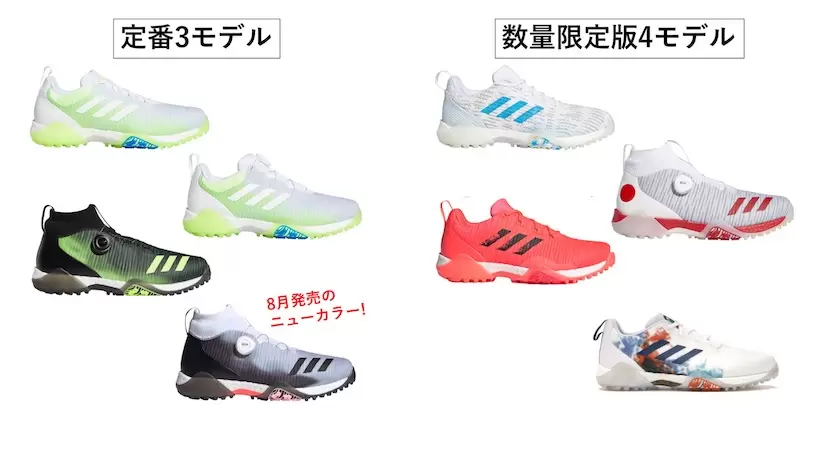 「コードカオス」シリーズは定番モデルがメンズ3モデル、ウィメンズ2モデル。数量限定版としてメンズ4モデル、ウィメンズ2モデルが登場し、その都度話題となった。定番品の「コードカオス BOA」には8月に新色が発売された。