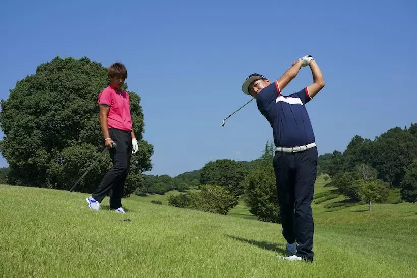 田所嵩瑛(たどころ・たかあき)。小学6年生でゴルフを始め、2016年研修生に。2019年プロテストに一発合格を果たした。気鋭の新人プロ(左)。サザンヤードCC所属の研修生・高橋大輝(たかはし・だいき)さん(右)。田所プロ同様、ドライバーの飛距離は300ヤードを超える。