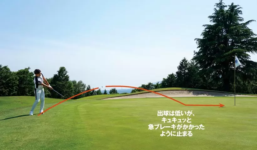 ボールがフェース面とコンタクトする時間が短く、体打ちよりもスピン量が少なめだ。