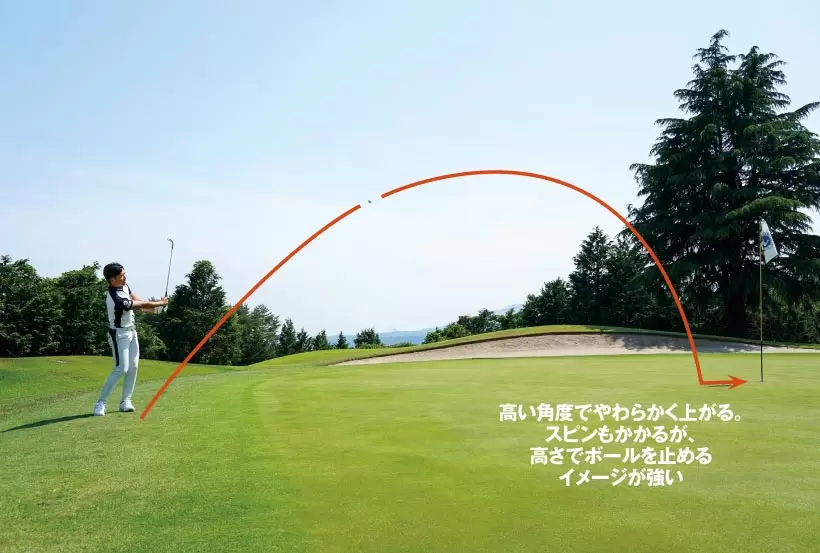 高い角度でやわらかく上がる。スピンもかかるが、高さでボールを止めるイメージが強い