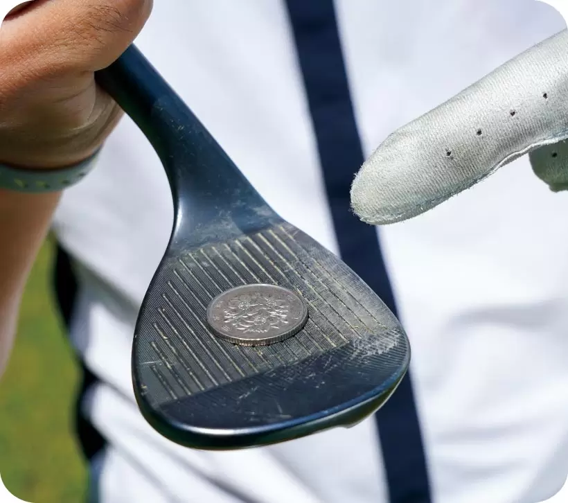 フォロースルーまで振り抜いたら、そのままフェース面を持ち上げてコインを真上に飛ばす遊び感覚の練習も効果的。