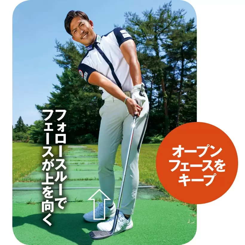 最後までコインを落とさないように練習し、フェースを開いたまま振る動きをマスターしよう。