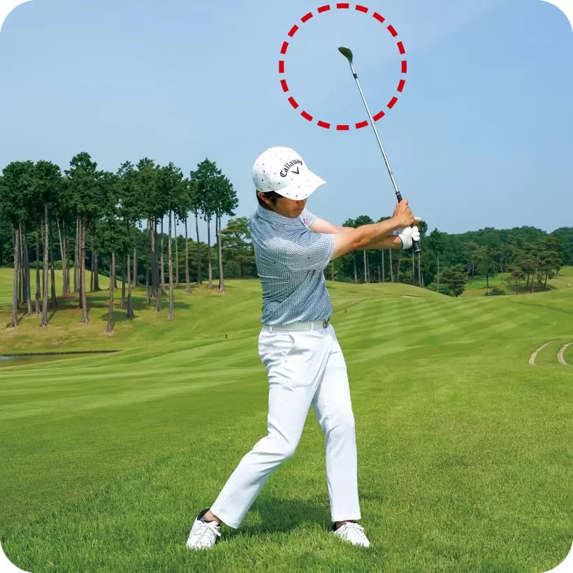 フィニッシュまで振り抜いたらトップの位置まで戻して連続素振りを繰り返そう。