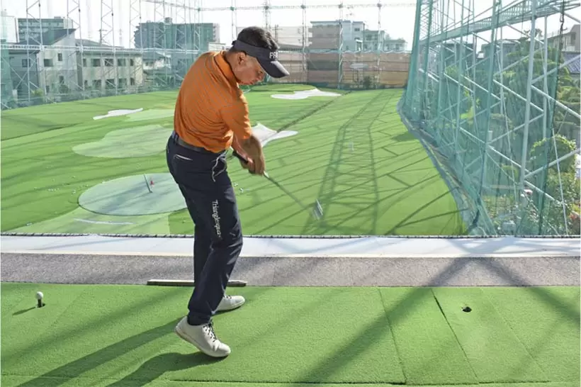力感を8割くらいに抑えた練習を多く積めばコースで使えるスイングが身につく。