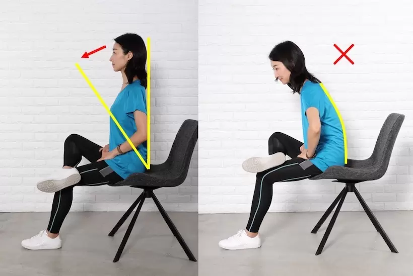 背中を真っすぐ伸ばしたまま、股関節から身体を前傾させる。お尻の筋肉が硬いと、痛みから背中が丸まりがち。