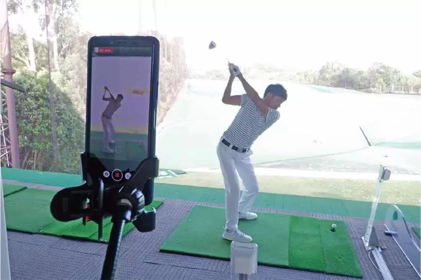 テークバックが速いと手を使いがち。ゆっくり上げれば体とクラブを一緒に動かせる。