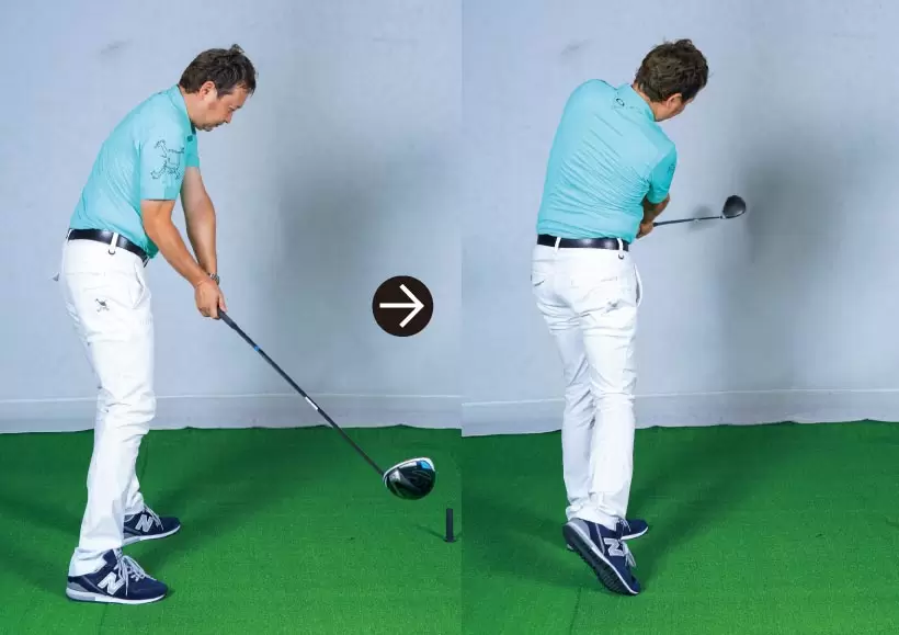 ハーフウェイダウンでタメがあると、手首と一緒に体が動いてしまうので、体が突っ込んだスイングになりやすい。
