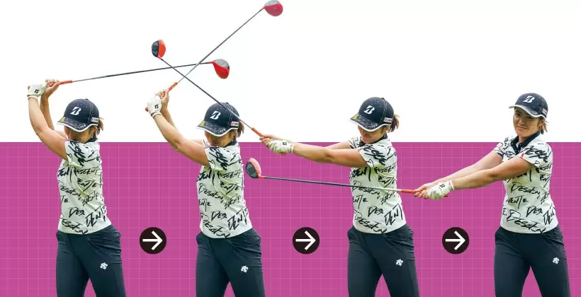 「渡邉選手はフックグリップなので、特にアウトサイド・インに打たないとフェード軌道にならないタイプでした」(中島)