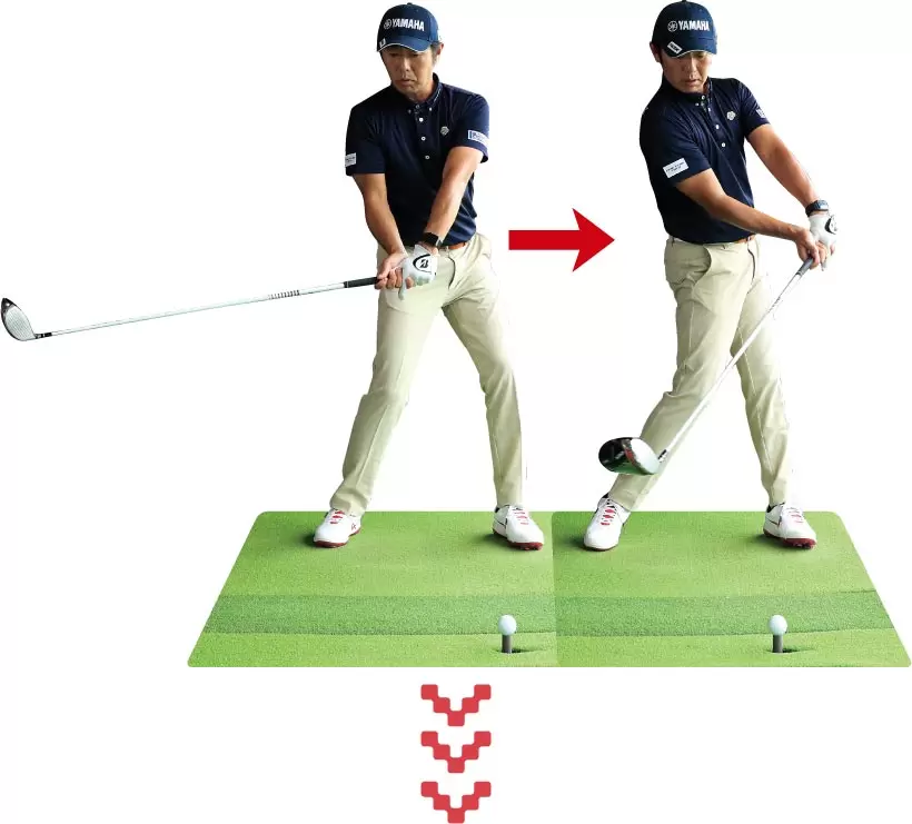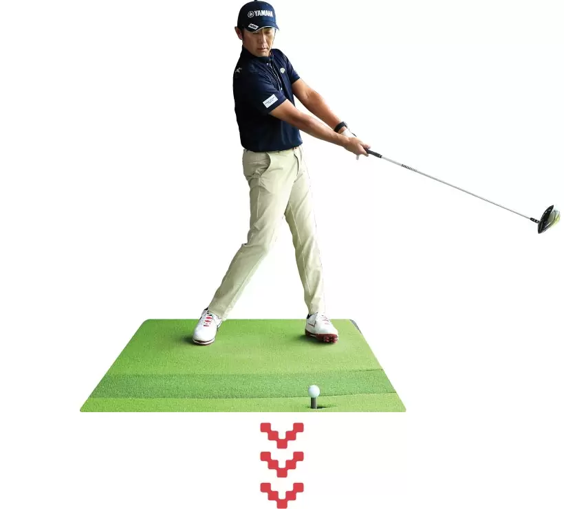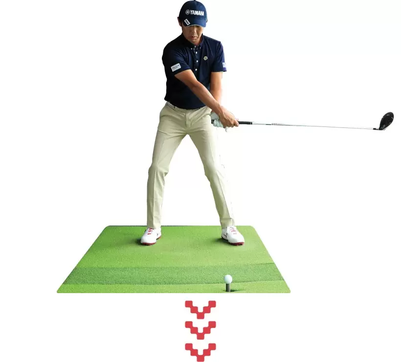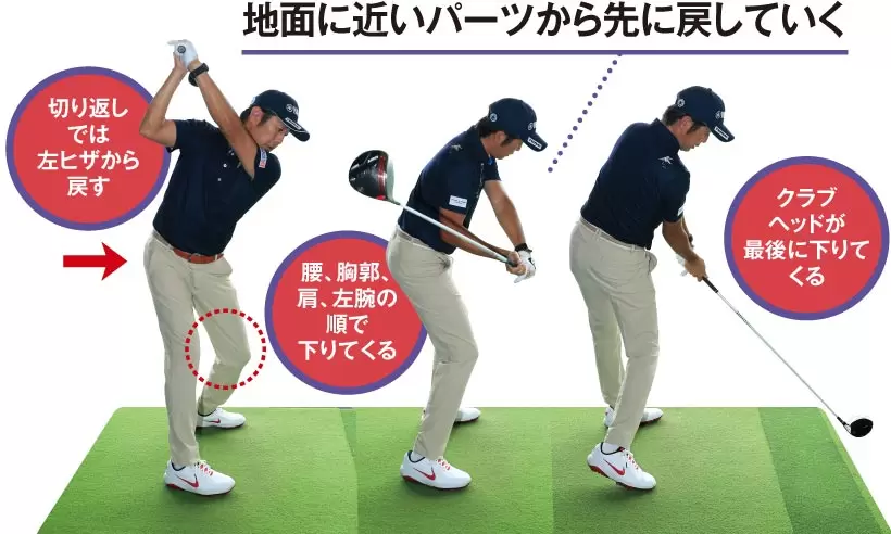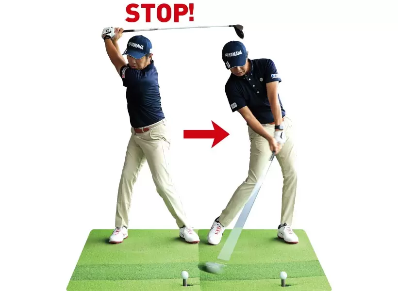 ダウンスイングの動きの順番が揃っているかどうかは、トップでいったん静止してから打ってみるとチェックできる。