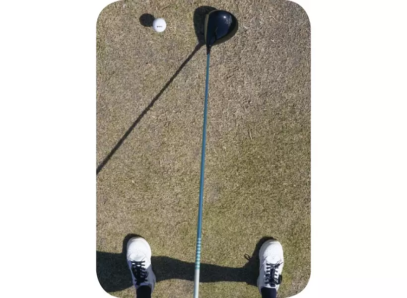 ヘッドに体を向けて構えると、目標に対してスクエアな構えになる。