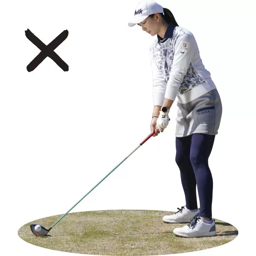 体をボールに向けると右肩が前に出て被ったアドレスになってしまう。
