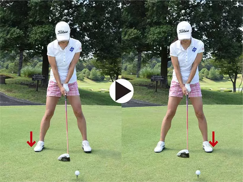両足を軽く足踏みさせて体重を交互に乗せると、テークバックの始動のタイミングがとりやすい。
