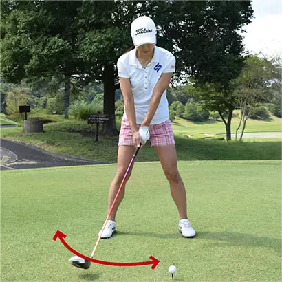 アドレスの姿勢からおヘソを右に回していくのがベストといえる。