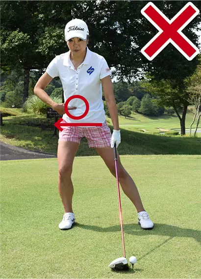 おヘソを真横に動かすとスエーを誘発しやすいのでNGだ。