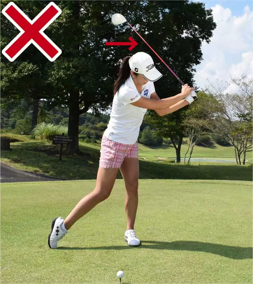 クラブを振り抜く方向にカラダが一緒に動いてしまうとクラブヘッドの遠心力が働かない。