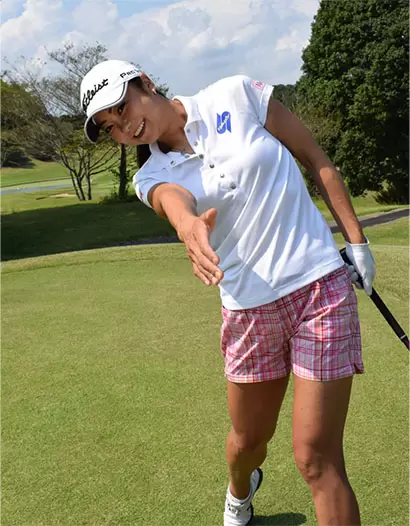 フォロースルーの右手は左隣の人と握手するイメージ。