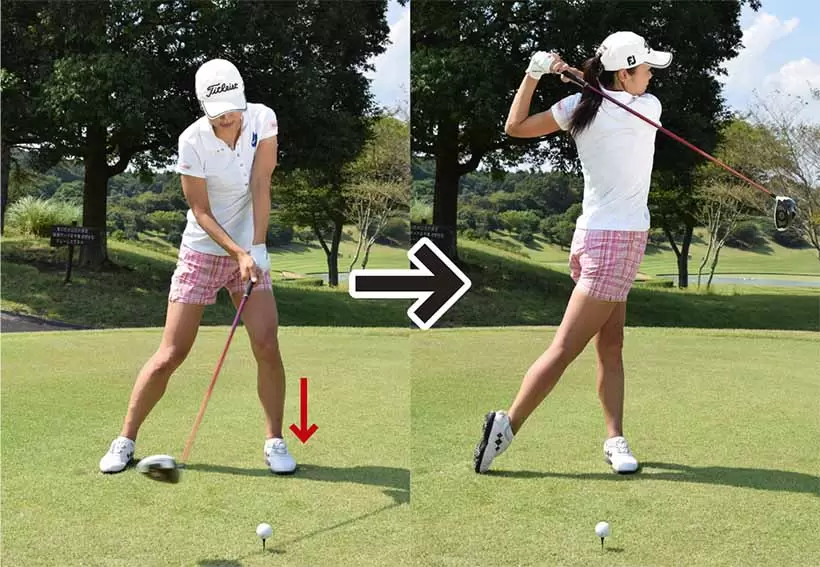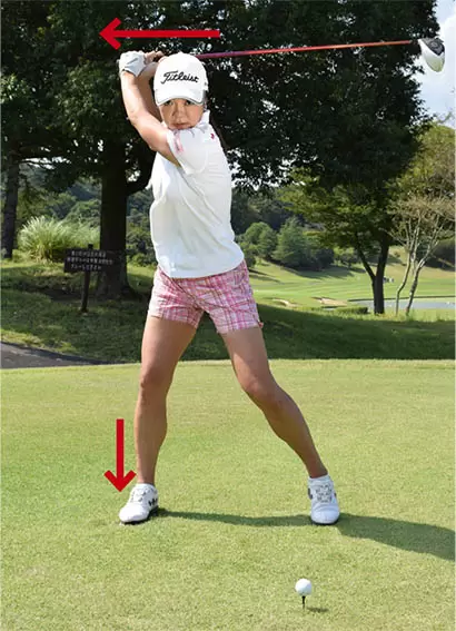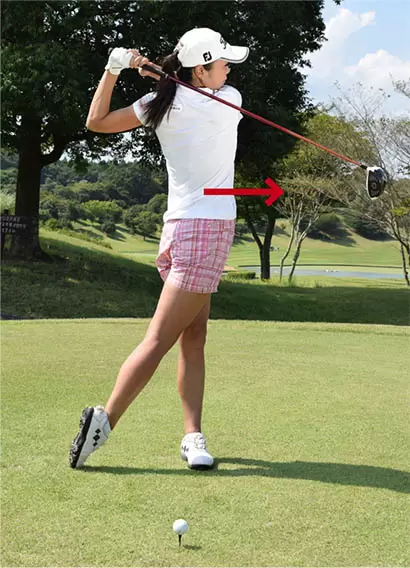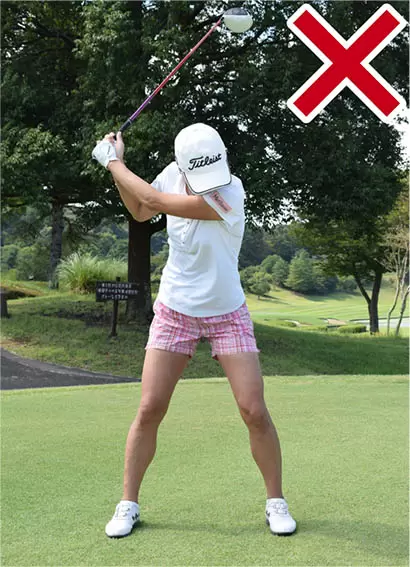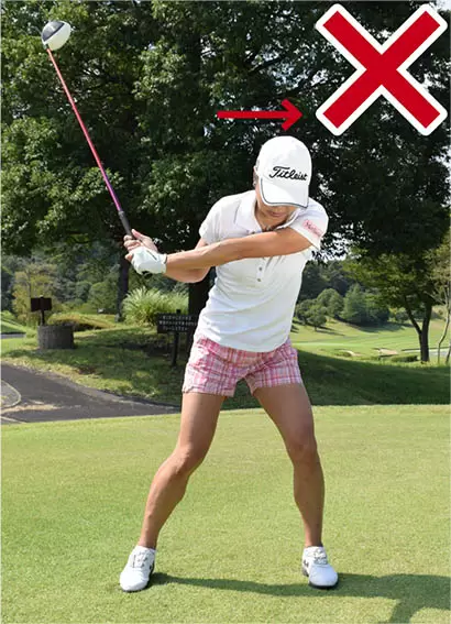 バックスイングで右ヒザや腰が流れると、体重を逃がしてしまうことになる。