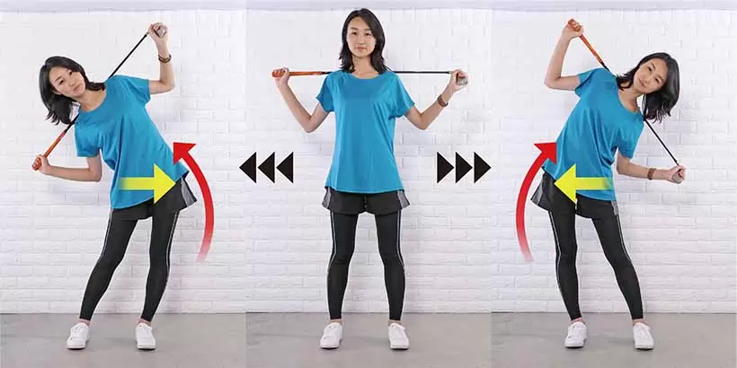 腰から太ももの外側が伸びる感覚を意識しながら行う。