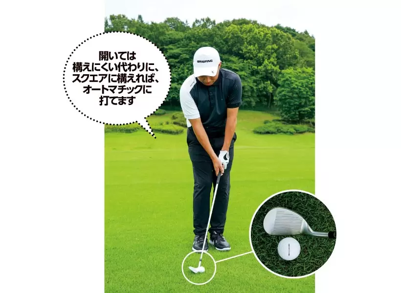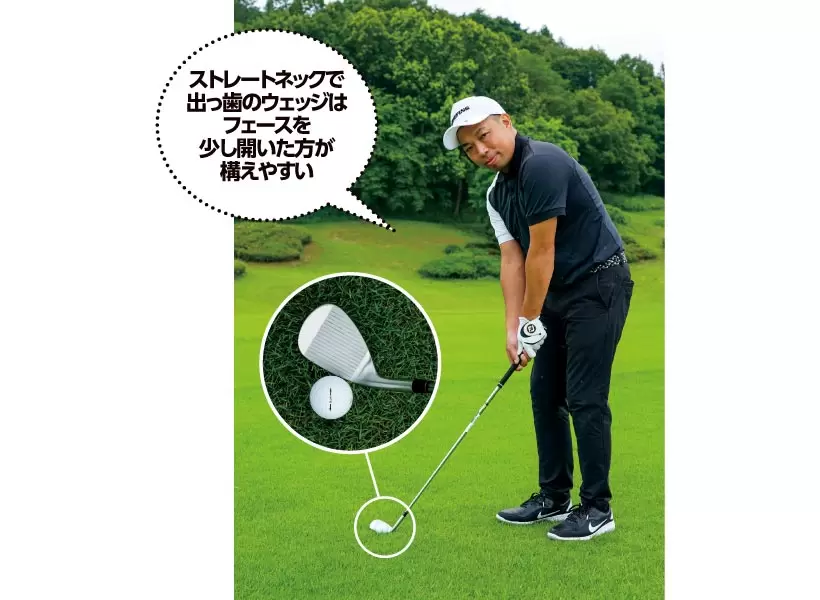 ストレートネックで出っ歯のウェッジはフェースを少し開いた方が構えやすい