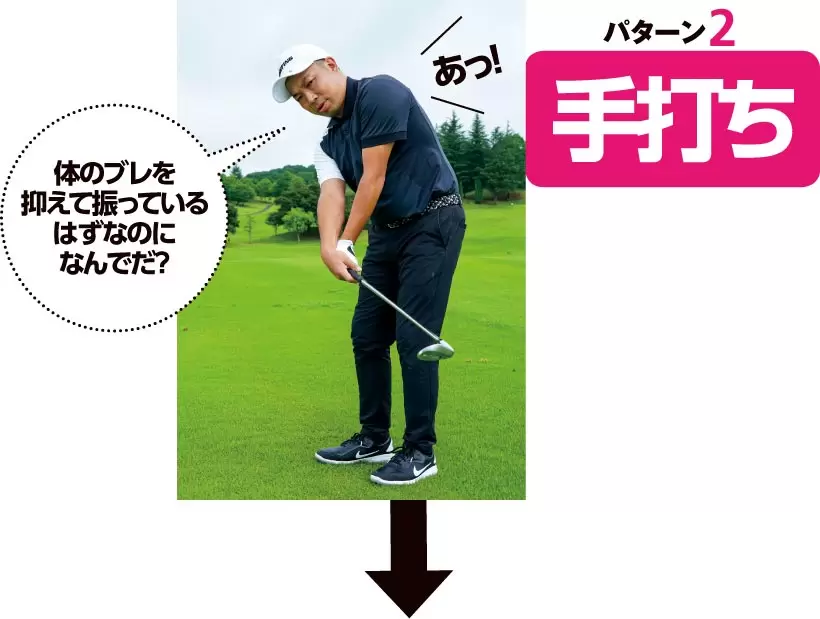 フォローで右手首が手のヒラ側に折れている。