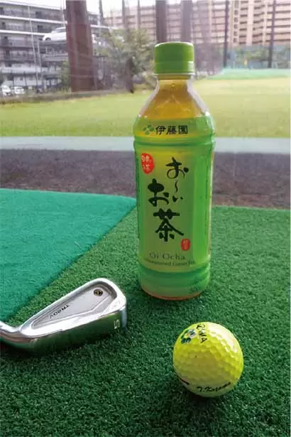飛球線よりも左に置いたボトルに当てないように振ることでインに引き込むクセを解消できる。