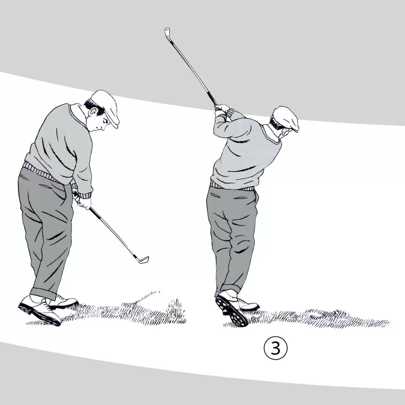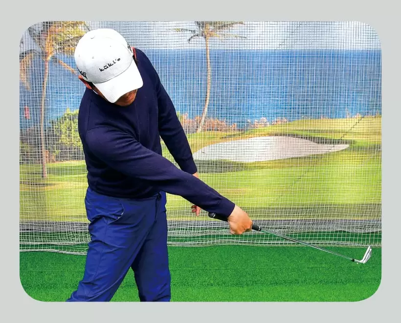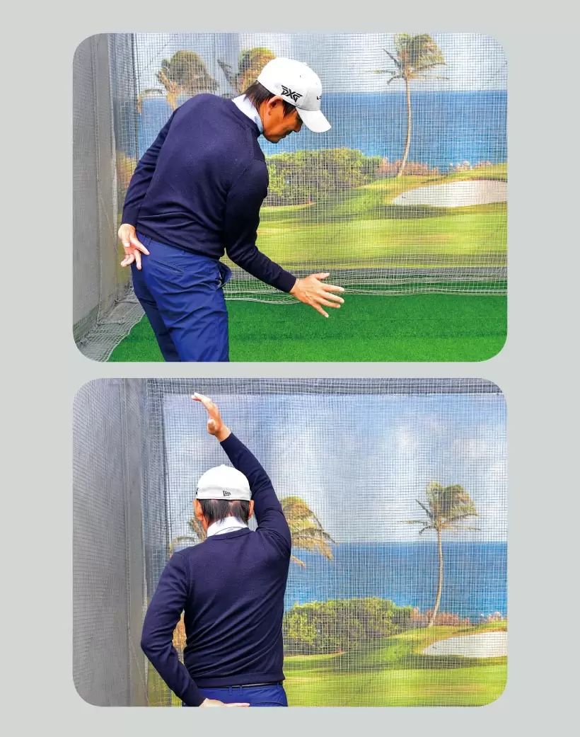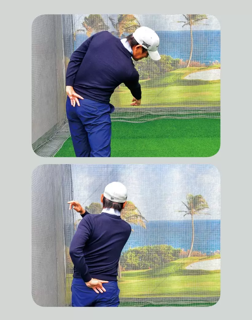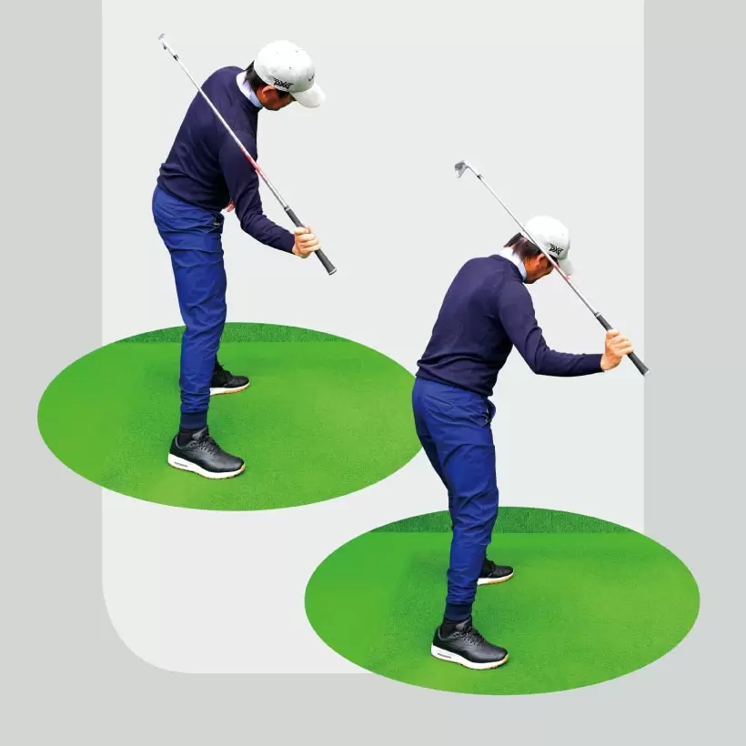 コッキングやヒンジングの形を考えすぎず、ヘッドを背中側、右肩より低い位置に残すイメージがスナップ動作のタメを最大にするコツ。