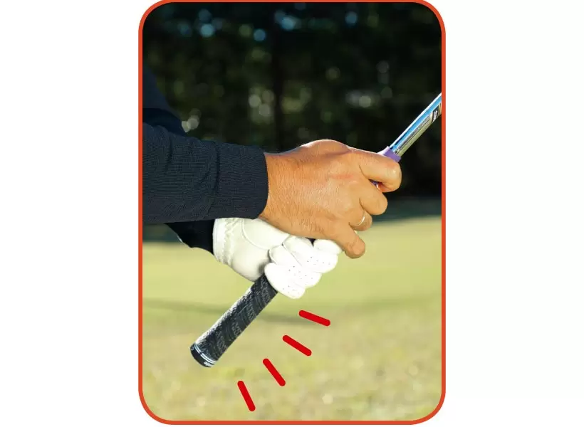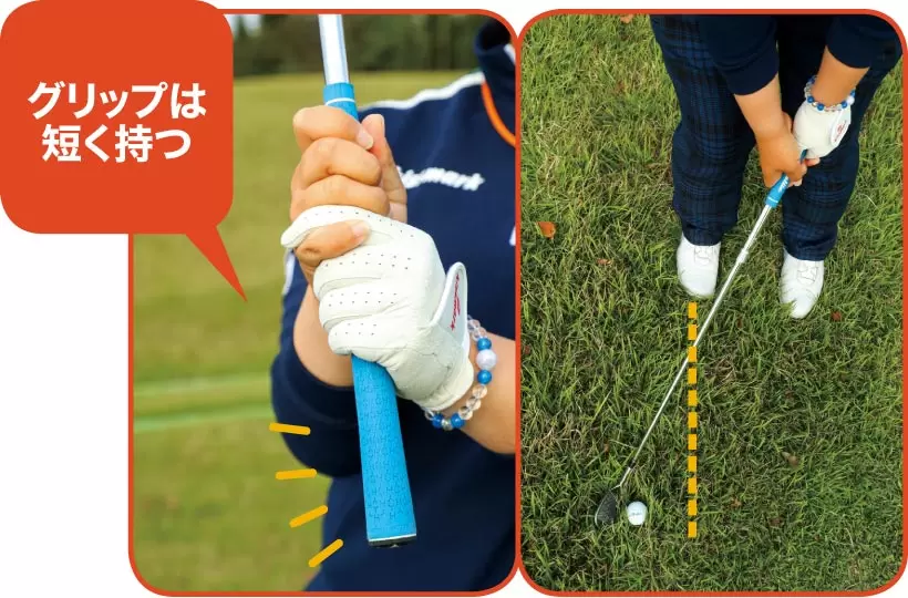 クラブは短く持つ。ワングリップ程度余らせるのが目安だ。