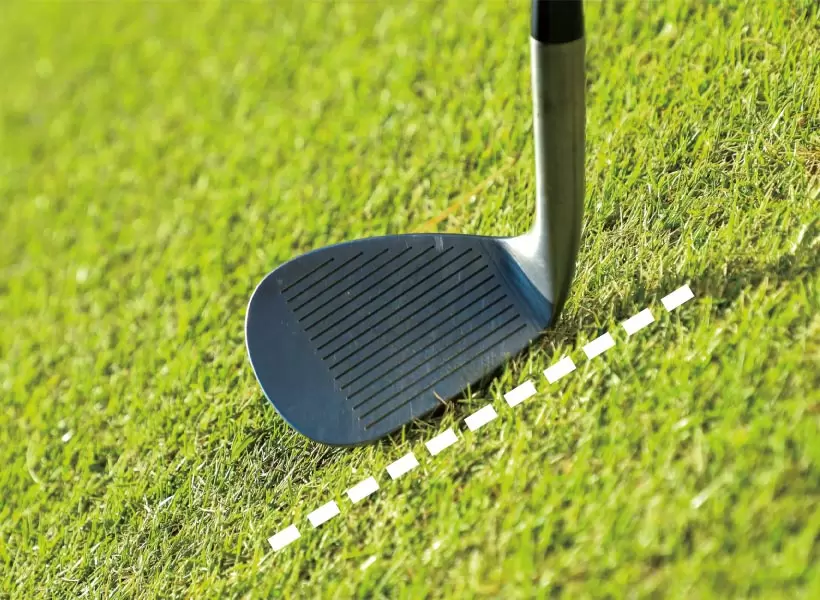 フォローでヘッドを真っすぐから外めに出す。クラブをインサイドに引き込むと左に飛ぶ。