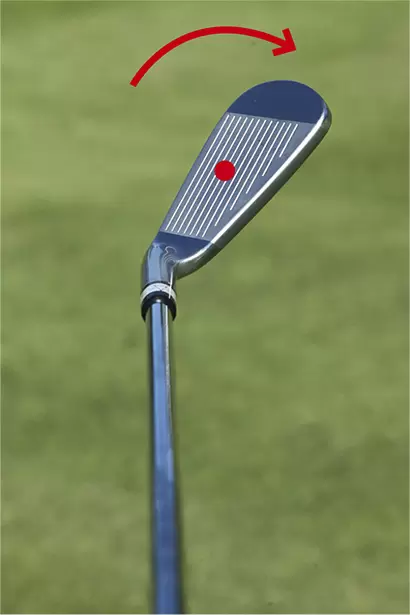 クラブを元の位置に戻すとヘッドの重心移動によってフェースのローテーションが発生する。