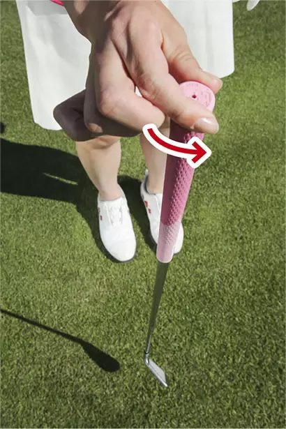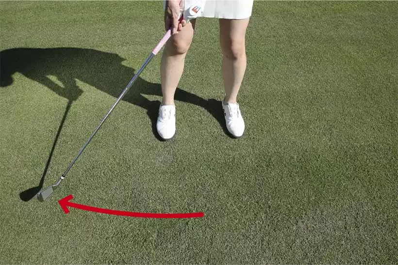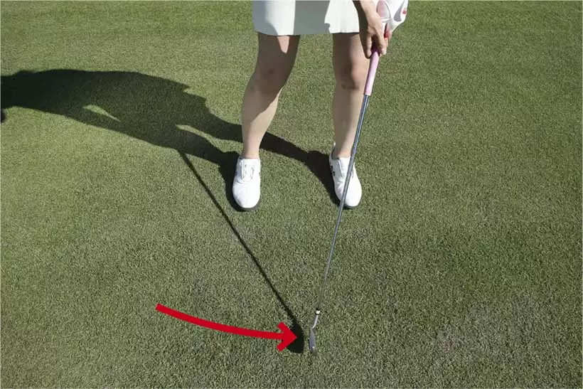 アドレスの姿勢を作り、リーディングエッジを目標に真っすぐ向ける。