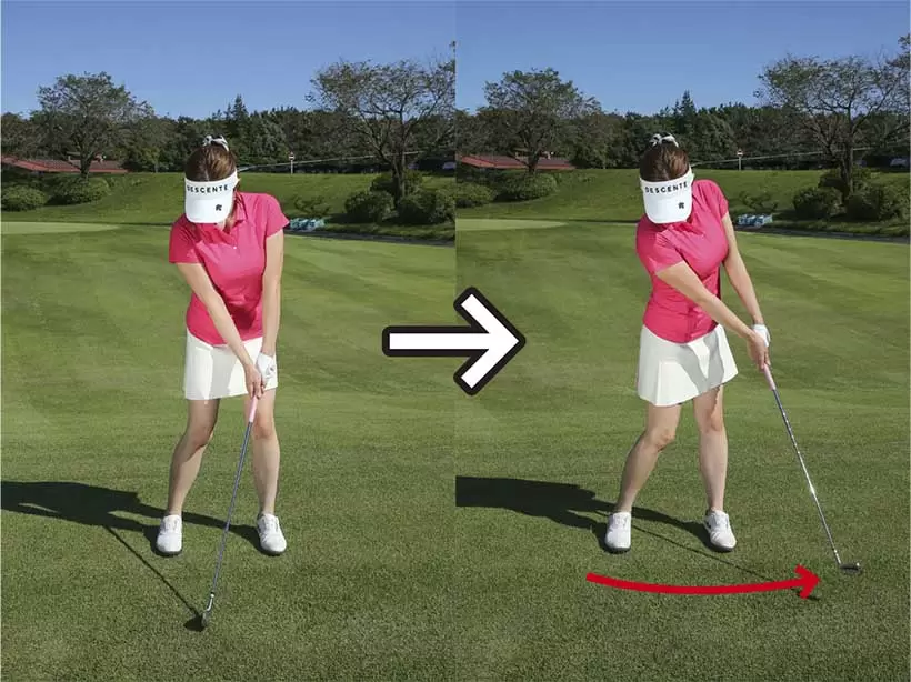 クラブが進みたがる方向にまかせれば、バックスイングでフェースが勝手に開く。