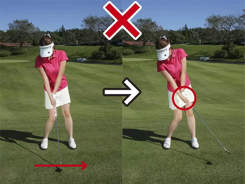 フェース面を真っすぐにキープしようとするとフリップになりやすい。つまり、すくい打ちだ。