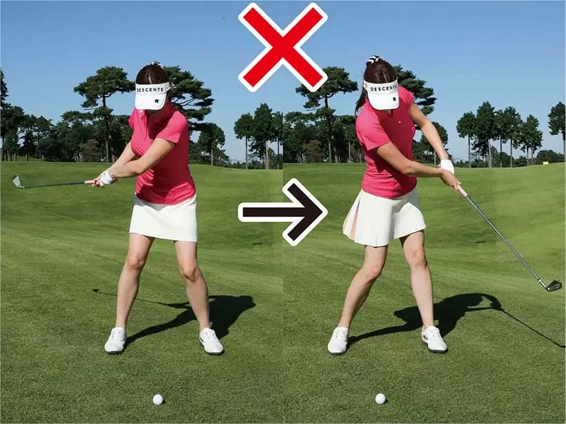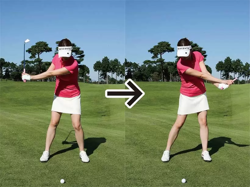 両ヒジの締まり感覚があれば肩や手首が柔軟に使えてクラブがスムーズに振れる。