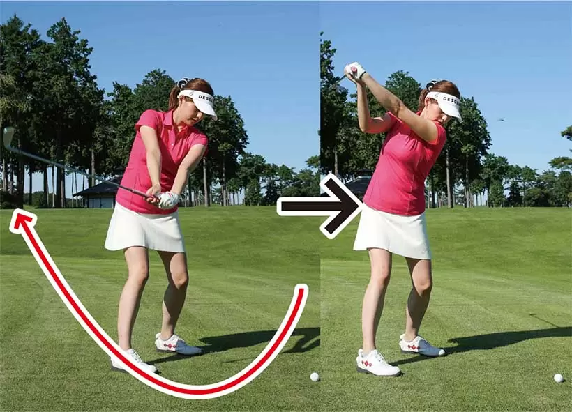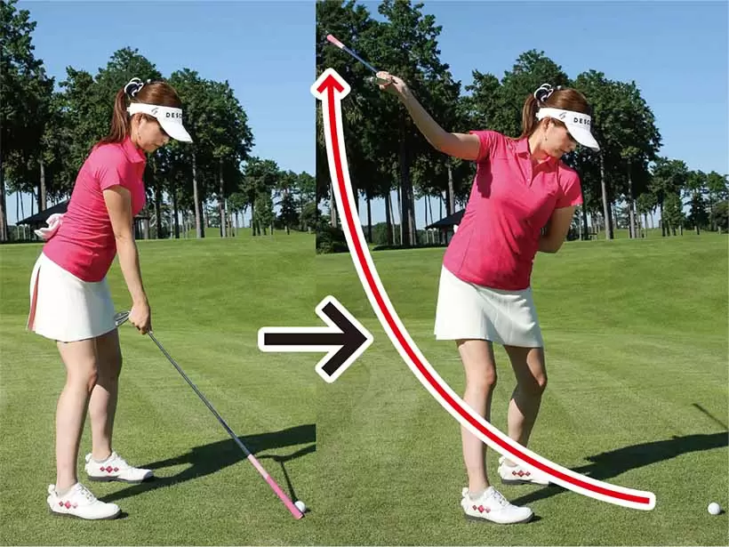 実際のスイングでもフォロードリルの感覚を取り入れるとテークバックがスムーズ。