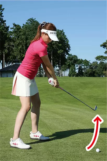 最初にフォロースルーの方向にクラブを出して、そこからバックスイングする。