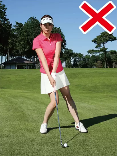 右足体重のままでは強く押せない。実際のスイングではこんなインパクトになっている人が多い。