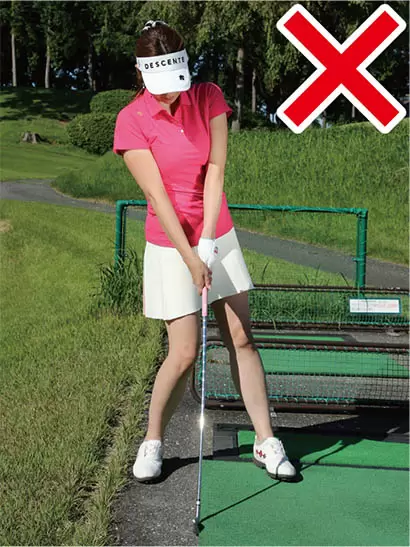 マットの端にクラブフェースを当ててアドレスの姿勢を作ろう。